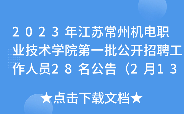 【導語】2023年江蘇常州機電職業技術學院第一批公開招聘工作人員28名,報名時間:2月13日9∶00-12月20日16∶00。?無憂考網現將招聘公告原文發布如下: